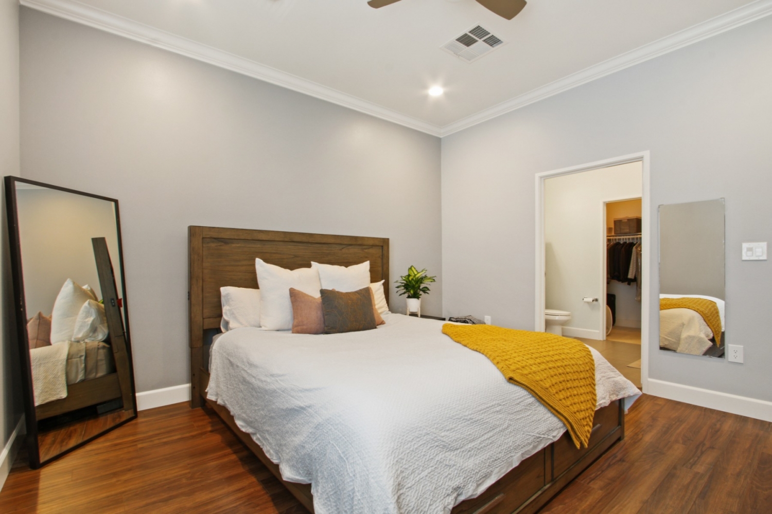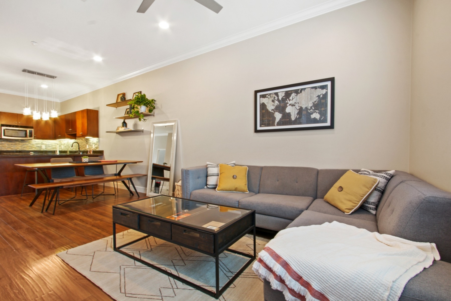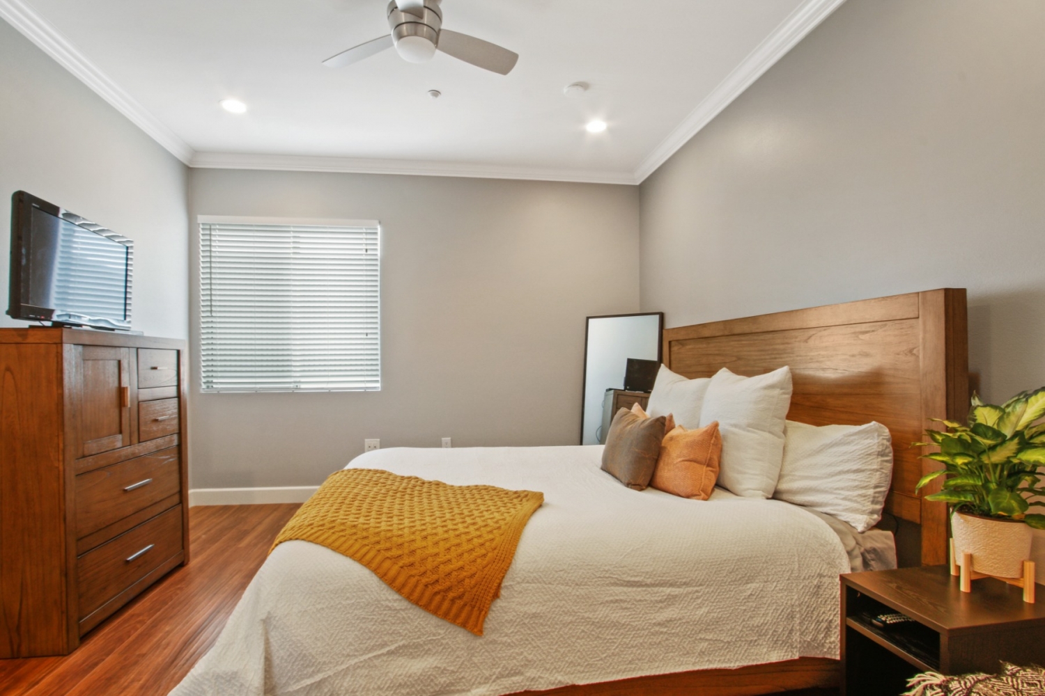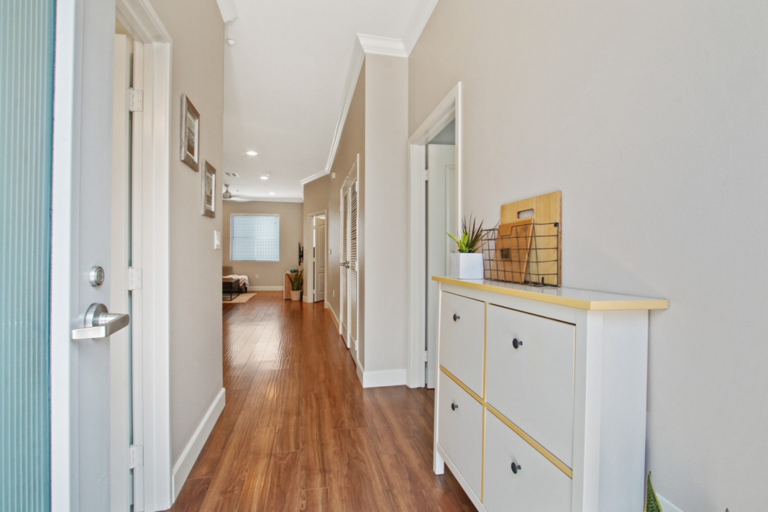 Location, Location! This Stunning Modern Harbor Lofts 2 bed 2 full bath Penthouse is in a Rare Corner End Unit location with only one shared wall. Convenient Prime Location in the Anaheim Colony Historic District by the Packing House, Garden Walk, the Anaheim Ice Rinks, and much more right outside your door! Virtual Walk-Through Tour Link: https://bit.ly/3b9MUKU As you enter you are immediately welcomed by beautiful Laminate Wood Floors and Soaring High Ceilings across the Open Great Room spanning the full length of the building from the Gorgeous Kitchen, through the dining, and into the Family/Living Room. The Spacious Kitchen is well equipped with sleek granite counter tops, glass tile back-splash, dark wood cabinets, stainless steel appliances, and a breathtaking 8-light cluster cylinder pendant above the large peninsula. Upgrades throughout include Crown Molding, Tall Baseboards, Ceiling Fans, recessed LED lighting, Wi-Fi Smart Dimmer Switches, USB wall outlets, Laminate flooring, and much more! The Convenient indoor laundry closet includes a full-size washer and dryer. The Secure Gated 2-car end unit parking spots are in the lower Parking Garage right next to the elevator. The Harbor Lofts Community offers a resort-style pool and spa area with loungers, couches, large umbrellas, tables, chairs, and BBQs on the same level as a gym and weight equipment. Enjoy the Many Great nearby entertainment options and being close to the I-5 and 91 freeways, FRAN, and Disneyland!